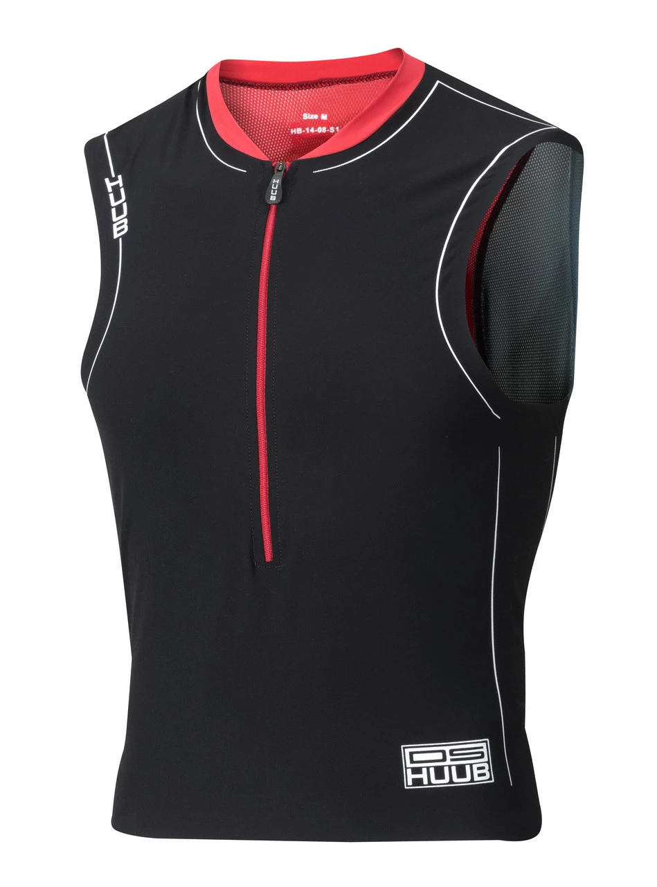 In the same collection as the Dave Scott tri-suit but offered as a separate singlet – the lack of sleeves allows this piece to be worn during WTC events where sleeves are not permitted.