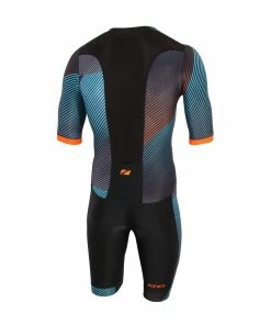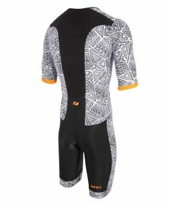 Zone 3 Zone3 – Activate+ Men’s Kona Speed Short-Sleeve Full Zip Trisuit – Black/White/Orange – 2023
