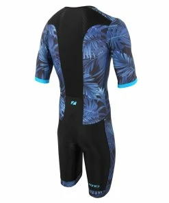 Zone 3 Zone3 – Activate+ Men’s Tropical Palm Short Sleeve Full Zip Trisuit – Navy/Blue – 2023