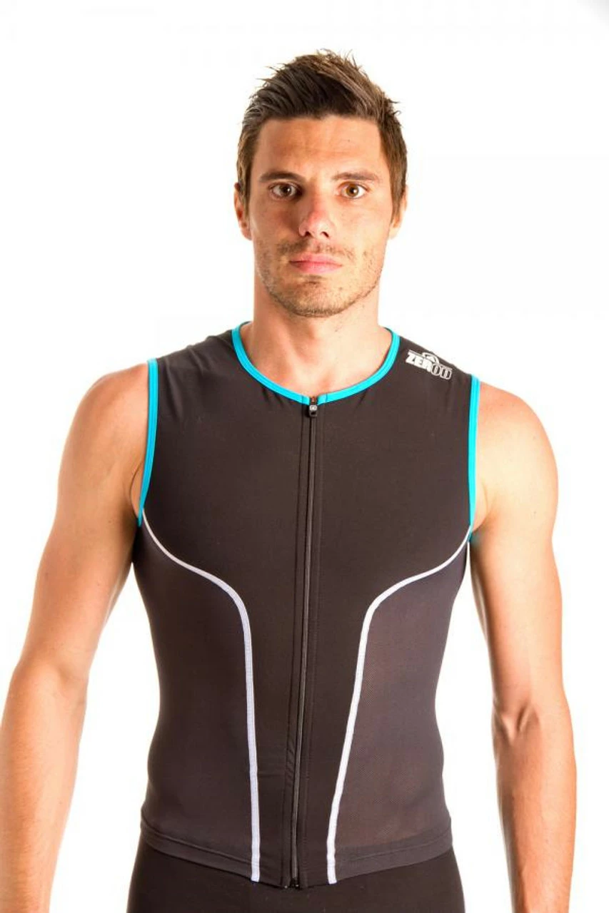 The iSINGLET has breathable side-panels, flat seams throughout and smooth stitching around the arms and neck to minimise irritation. The seamless Dry Tech Mesh back panel is also breathable and wicks away moisture. The lockable front zip is lined for comfort and opens from top to bottom so you can slip it on in a heartbeat at the first transition.