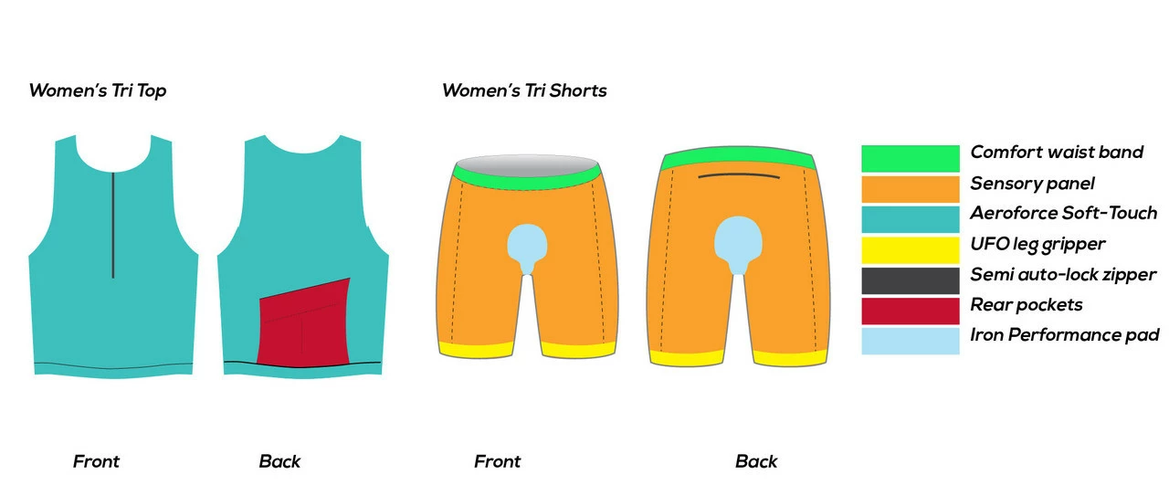4. Length – Designed to slightly overlap with the Tri shorts which gives the impression of wearing a suit, but with the versatility of wearing shorts and top.The top is also longer at the back compared to the front to ensure good coverage, especially in the Aero position.